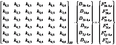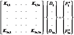 Etapa 1.3. Stabilirea ecuatiei matriceale de echilbru static prin raportare la parametrii structurii, completand cu ecuatii fictive corespunzatoare parametrilor structurii ce nu sunt aferenti sau nu apartin saibei (in aceasta etapa notatiile utilizeaza majuscule sau indici referitori la apartenenta la elementul curent):