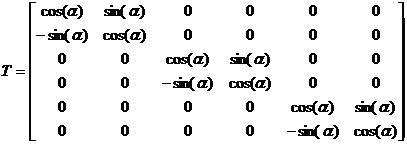 Parametrii proprii ai extremitatilor zabrelei sunt proiectati pe directiile parametrilor structurali aferenti ai nodurilor corespunzatoare cu ajutorul matricei de transformare prin rotire, T, care are ca elemente componente cosinusii directori ai axelor proprii (xy) definiti functie de reperul structurii (XY). In cazul diafragmelor plane matricea de transformare prin rotire este de forma:
