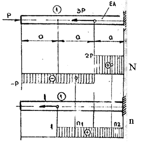 Se traseaza diagrama de forte axiale N data de saecinile de pe bara si diagrama n data de forta unitate introdusa în 1.