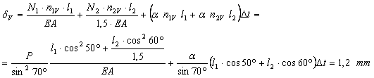 Sa se calculeze deplasarea punctului 1 la sistemul din figura 6, daca P = 80 kN, A = 600 mm2, l1 = 0,8 m, l2 = 1 m, t = 5°C, a = 12 · 10-6 °C-1 , E = 21 · 104 N/mm2.
