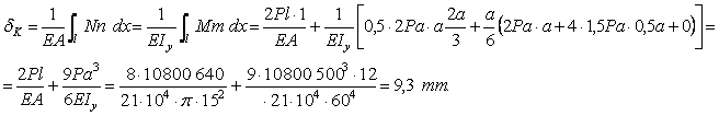 Scriind momentul încovoietor într-o sectiune si aplicând teorema lui Castigliano, se gaseste: