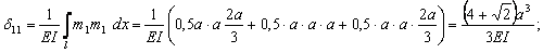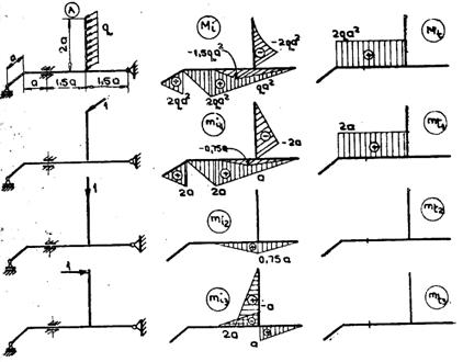 Deplasarile pe trei directii ale punctului A, calculate pe baza diagramelor de momente încovoietoare produse de sarcina q si de sarcinile unitare introduse în A sunt: