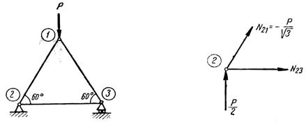 În mod analog, în baza schemei din figura 1,b, se determina eforturile n din bare: