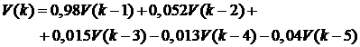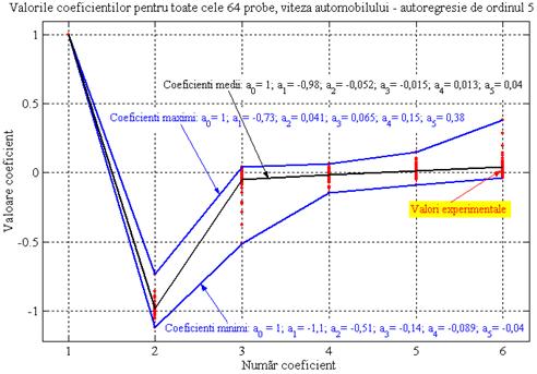 Graficul din fig.7 arata ca majoritatea valorilor coeficientilor este plasata in zone concentrate din intreaga plaja de variatie; este sugerata astfel o generalizare, in sensul utilizarii valorilor medii ale coeficientilor. Ca urmare, din fig.7 rezulta autoregresia de ordiul 5 obtinuta cu valorile medii ale coeficientilor