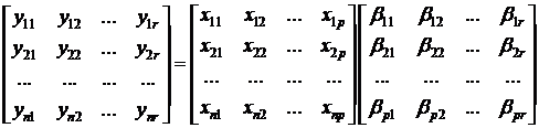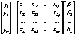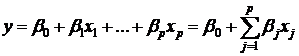 O regresie liniara multipla, cu y marimea rezultativa si x1, x2, , xp un numar de p variabile factoriale, este descrisa matematic prin relatia: