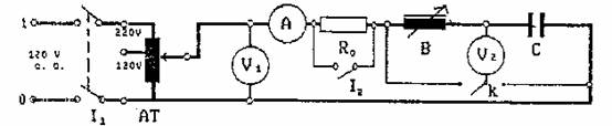 AT - autotransformator reglabil; A - ampermetru feromagnetic;