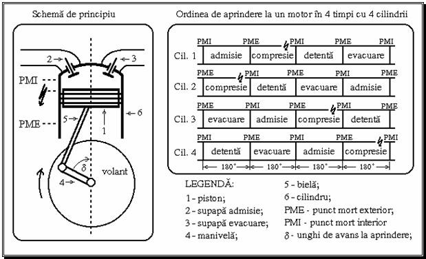 Pentru a întelege principiul de functionare al unui motor termic în patru timpi prezentam în continuare, în mod simplificat, succesiunea temporala a proceselor care au loc.