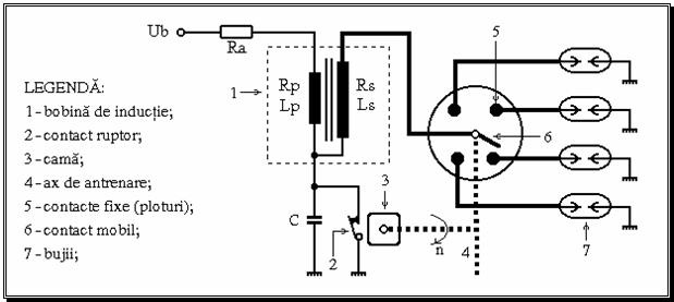 Fig. 2 Schema electrica a aprinderii clasice pentru un motor cu 4 cilindrii