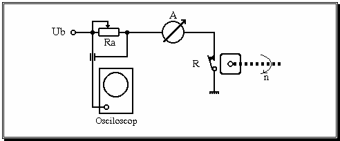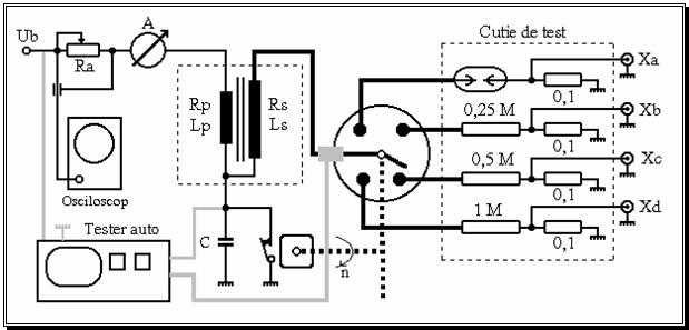 Pentru determinarea unghiului Dwell si studiul ruptorului se utilizeaza montajul din figura 4, iar pentru trasarea caracteristicilor aprinderii montajul din figura 5.