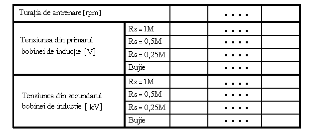 - pentru o valoare a turatiei de antrenare se deseneaza formele de unda ale tensiunilor din primarul si secundarul bobinei de inductie.