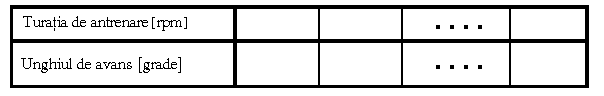 - pentru fiecare turatie de antrenare se citeste deplasarea unghiulara a segmentului luminos fata de reperul de 0 , anterior fixat;