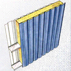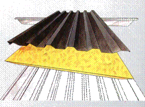 Sistemul cel mai frecvent utilizat actualmente si considerat ca sistem etalon în industrie este sistemul de închidere cu dublu strat de tabla cutata (Figura 1.6). Atât din punct de vedere al performantelor cât si al costului, acest sistem constituie o solutie eficienta pentru o cladire parter "tipica" având învelitoarea si închiderile realizate pe baza de tabla cutata din otel. S-ar putea chiar spune ca toate celelalte sisteme disponibile la ora actuala deriva din acest sistem. fiind realizate de obicei pentru a satisface cerinte particulare de cele mai diverse naturi. În ultimul timp au fost facute progrese în sensul ameliorarii performantelor structurale ale elementelor de închidere, ale rezistentei rosturilor acestora la agentii atmosferici, al metodelor alternative de izolatie si de finisaj. Aceste perfectionari au contribuit la cresterea eficientei economice a produselor respective, mai ales în ceea ce priveste costurile operatiunilor de executie pe santier.