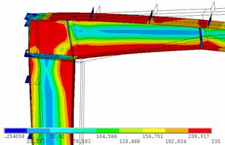 Rezultatul acestui studiu a scos în evidenta eficienta prinderii laterale a cadrului, realizata în practica prin panele de acoperis, riglele de perete si a contrafiselor, în ce priveste stabilitatea globala a cadrelor portal. Acestea împiedica pierderea stabilitatii laterale, care ar putea afecta comportamentul întregului cadru.