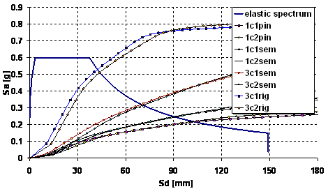 Trebuie subliniat ca nu a fost înregistrat colapsul structurii în nici unul din cazuri. In aceste conditii colapsul teoretic a fost considerat deplasarea corespunzatoare spectrului de capacitate pentru proiectarea structurii. Astfel valoarea factorului de reducere a miscarii seismice, calculat ecuatia de mai jos), este prezentat în Figura 3.6.
