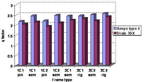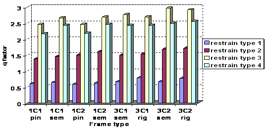 Factorii q calculati conform Eq (3), utilizând valorile din Tabelul 3.1 sunt prezentati in figura 3.8, pentru fiecare tip de cadru in parte.