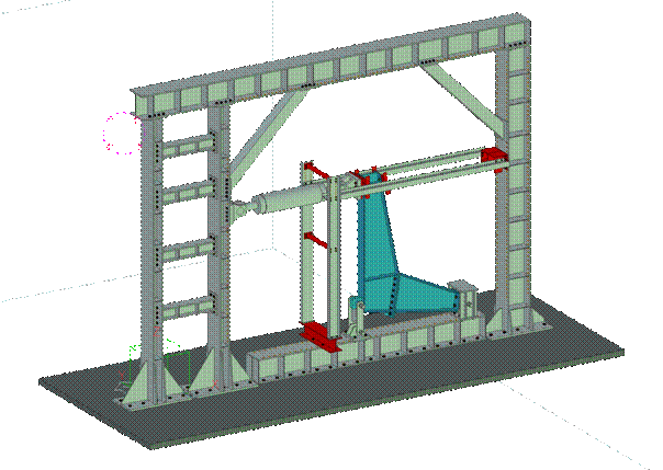 Pornind de la rezultatele obtinute anterior si utilizând acealeasi îmbinari, este in curs de realizare un set de teste experimentale care sa intareasca rezultatele obtinute in urma analizelor efectuate. Testele experimentale se vor realiza (specimenele pentru încercare existând deja) incinta Laboratorului departamentului de Constructii Metalice si Mecanica Constructiilor al Universitatii "Politehnica" din Timisoara. Standul experimental este prezentat in figura urmatoare.