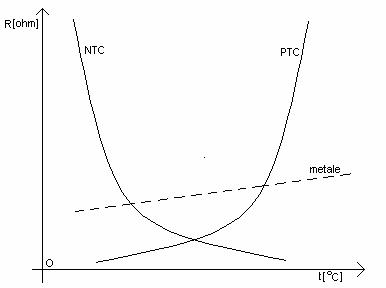 Variatia rezistentei in functie de temperatura (caracteristica statica) pentru termistoare si comparat cu variatia rezistentei a metalelor este ilustrata in figura 1.