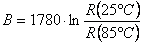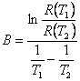 Determinarea indicelui de sensibilitate termica B, implica cunoasterea rezistentelor corespunzatoare la doua valori ale temperaturii R(T1) si R(T2). Prin logaritmare din relatia 5 se obtine: