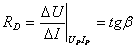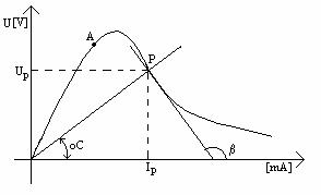 Pe baza datelor se deseneaza caracteristica volt-ampermetrica a termistorului. Pe acest grafic se ia un punct oarecare P pentru care se calculeaza rezistenta statica RS cu relatia (10) si rezistenta dinamica RD cu relatia (11). Aceste valori se trec in tabelul 2.