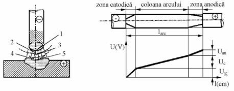 Partile componente ale arcului electric sunt prezentate în figurile 5.2. si 5.3.