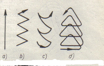 a.) linie dreapta b)pendulare în zig-zag c.)pendulare dupa arc de cerc