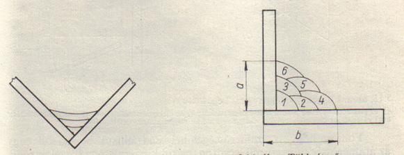 Sudarea în jgheb a cordonului de colt este reprezentat în figura 5.16.Radacina se va suda cu un electrod cu diametru mic de exemplu 2,5 mm sau maxim 3,25 mm. Un exemplu de realizare a unui cordon de colt mai mare de 5 mm este prezentat în figura 5.17.. În acest caz se urmareste realizarea unui triunghi isoscel adica a=b figura 5.17.