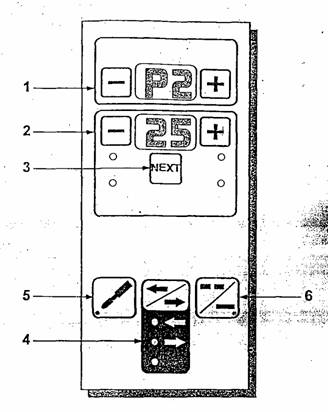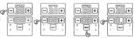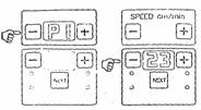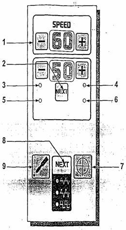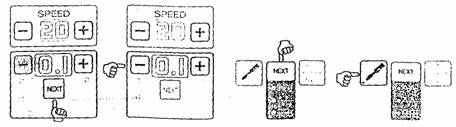 next schimbarea intre 4 meniuri pentru programarea miscarii de oscilatie; dioda luminiscenta verde indica alegerea meniului