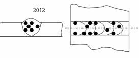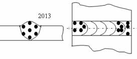 Sir de sufluri dispuse in lant de-a lungul axei longitudinale a sudurii. |