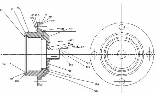 Suprafetele cu rol functional sunt: S1,S3,S4,S5,S6,S7, ,S10,S11,S13,S15,S16,S18,S20,S21.S22,S23,S24,S25,S26,S27.