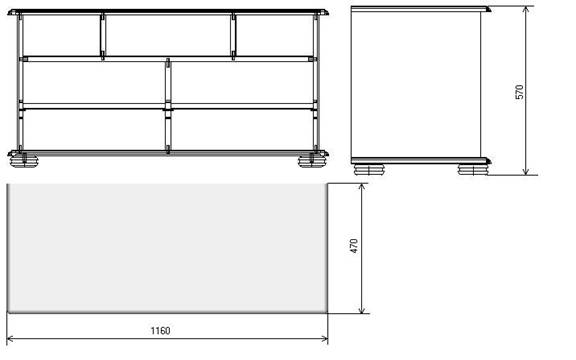 Peretii laterali se monteaza cu placa superioara, intermediara, inferioara, peretii despartitori si picioarele cu ajutorul cepurilor rotunde aplicate. Spatele se monteaza cu suruburi pentru lemn. Suportii din metal pentru polite sunt introdusi in P.A.L., dupa ce in prealabil s-au executat burghierile necesare, apoi se aseaza politele. Sertarul este montat cu ajutorul unor sipci de glisare din masiv de fag.