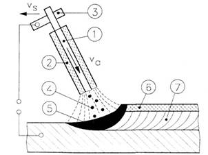 Figura 1.1. Schema sudarii manuale cu electrod fuzibil.