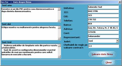 Imaginea de mai sus este generata de meniul din partea de sus a aplicatiei : Sisteme/Setari firma