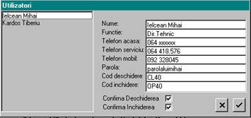 Cu ajutorul controlaelor se adauga, se sterg, se modifica datele unui utilizator.