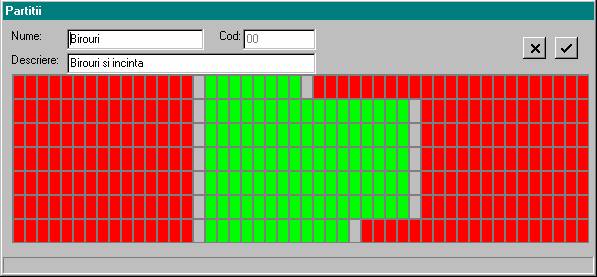 Orarul de armare/dezarmare al partitiei: Caroiajul reprezinta codificare in culori a orarului de armare/dezarmare a partitiei respective. Codificarea este urmatoarea: rosu- sistemul trebuie sa fie armat, verde sistemul trebuie sa fie dezarmat, gri nu conteaza starea sistemului.