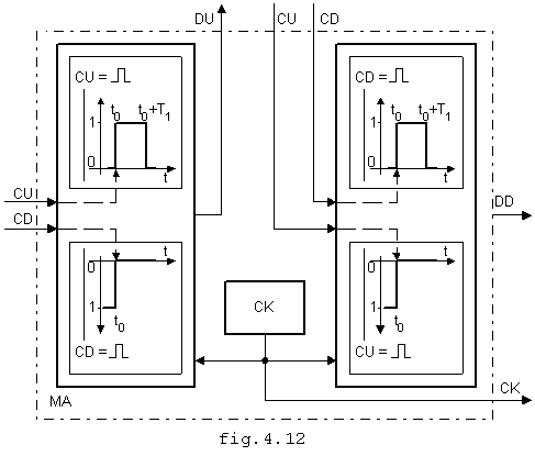 Controlul generarii semnalelor CU si CD īn R este rea-lizat prin semnalele DU si DD. Nivelul ridicat al oricaruia dintre ele: