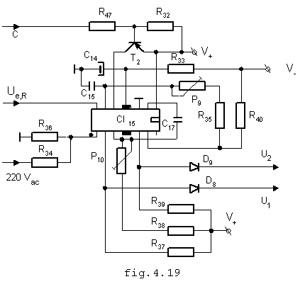 R este cea aplicata pinului 8 al circuitului integrat pentru comanda īn faza. Intr-o prima faza din dependenta prezentata se deduce acea valoare a tensiunii de iesire a regulatorului care va asigura compensarea uzurii maxime admise a sculei, hr,m si anume: