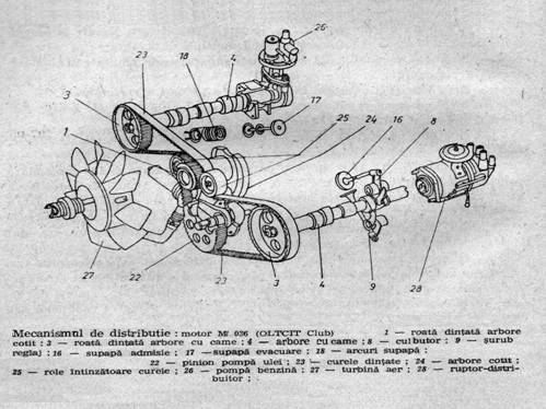 Sistemul de distributie are rolul de a realiza timpii MAS4t si de a realiza avansurile si intarzierile supapelor, precum si initierea la momentul potrivit a arderii prin generarea scanteii electrice. 818f59i