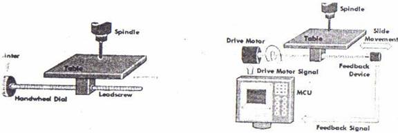 Fig.1. Diferenta īntre o masina clasica, actionata manual(a) si o masina controlata numeric(b).