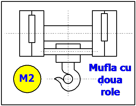 Considerand ca baza de referinta grupa de functionare IIIm, muflele tipizate cu doua role (M2.3 - M2.4) sunt folosite pentru sarcini de ridicare cuprinse intre Q = (3,2 …… 40)tF, cele cu patru role (M4.6 - M4.80) se folosesc pentru sarcini de ridicare cuprinse intre Q = (6,3 …… 80) tF iar cele cu sase role (M6.32 - M6.100) pentru Q = (32 … 1oo) tF.