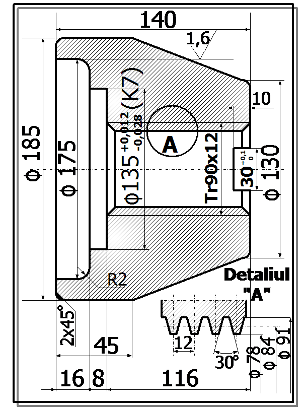 Se verifica axul rolelor tinand seama de gaura de ungere: