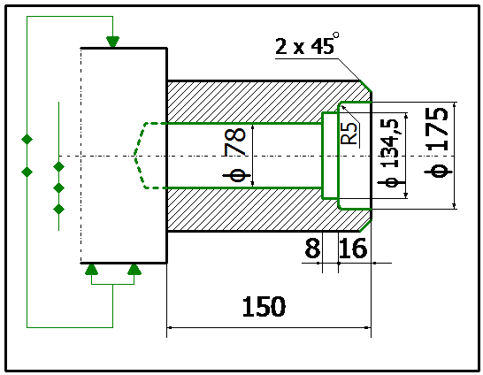l = 150 mm, lungimea suprafetei prelucrate;
