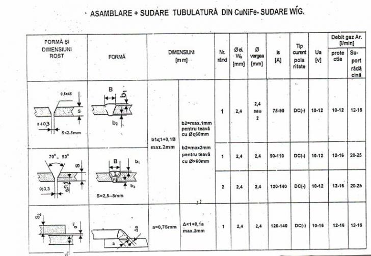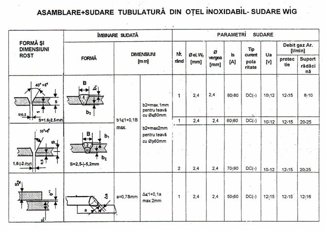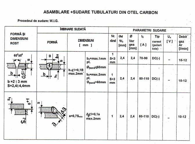 In cazul utilizarii procedeului de sudare in mediu de gaz inert cu electrod de wolfram, se vor utiliza vergele pentru sudare tip ER70S-3 / AWS A 5.18 Ř1,6; Ř2; ; Ř2 ,4 mm , argon I 1/ EN 439 puritate min 99,998%, alimentat de la butelii sau de la retea, electrozi din wolfram Ř2,4 mm, aliat cu oxid de thoriu sau lantaniu , pentru sudare în curent continuu DC .