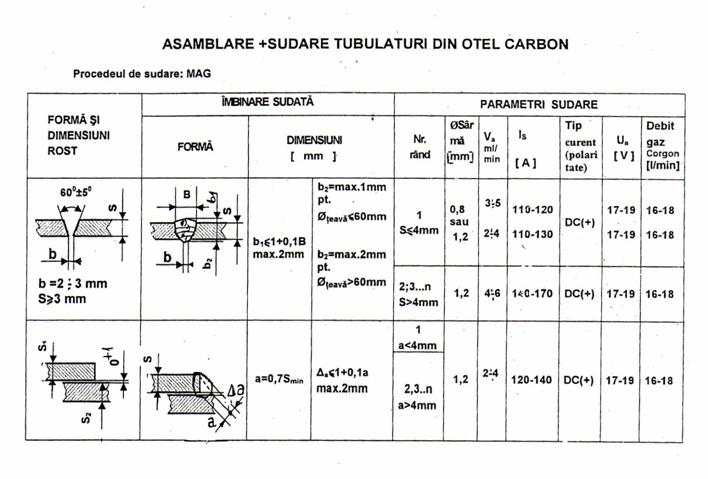 In cazul utilizarii procedeului de sudare semiautomata in mediu de gaz protector cu amestec de gaze MAG, se va utiliza sârma plina pentru sudare MAG - f 1,2 tip SG2 /DIN 8559 (G3Si1/ EN 440) si gaz amestec - tip M21 conform EN 439 ( 20%CO2 +80%Ar ).