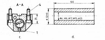 Tot pentru prelucrari exterioare se pot folosi bare de alezat, fixate în portscula din figura 1.7,c pe alezajul 032mm si pozitionate cu doua suruburi 1. Pentru dimensiuni mai mici de bare de alezat sau burghie, alezoare, tarozi etc., se folosesc reductiile de tipul celor din figura 1.7,d.