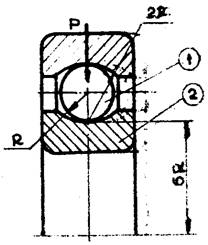 1. La rulmentul din figura 1 se cere sa se determine marimile semiaxelor elipsei de contact dintre bila si inelul interior, cantitatea cu care se apropie corpurile īn c 10110e415k ontact, presiunea īn centrtul elipsei de contact si tensiunile īn centrul elipsei de contact si la extemitatile semiaxelor elipsei. Se dau: R = 8 mm, E1 = E2 = 21 · 104 N/mm2; v1 = v2 = 0,3; P = 2 kN.