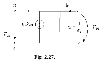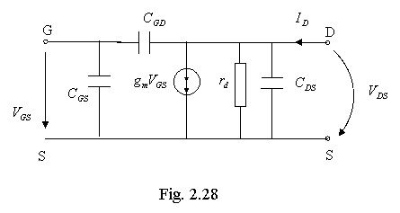 Cānd frecventa tensiunii de intrare este mare īncep sa conteze capacitatile dintre electrozi, motiv pentru care schema echivalenta de la frecvente medii se completeaza cu capacitatile CGS, CGD, CDS ca īn figura 2.28.