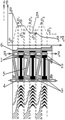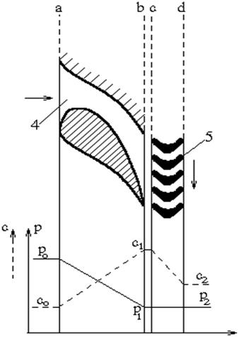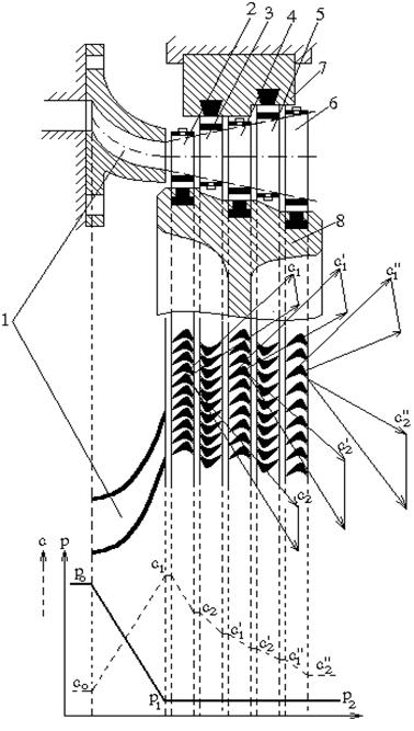 Fig. 1 Schema turbinei cu actiune cu o singura treaptă: