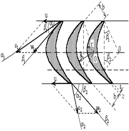 ce curge prin canalul dintre palete, în care suferă o abatere datorită profilului curbat al paletelor,