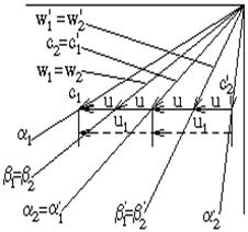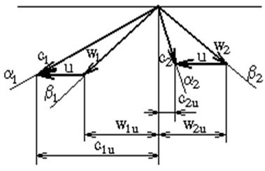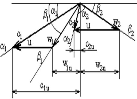 Fig. 3. Triunghiul de viteze pentru turbinele cu