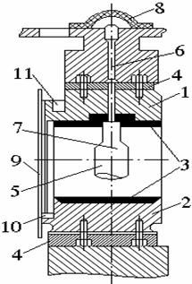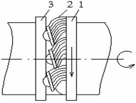 1-inel de împingere; 2-perne de împingere; 3-corpul lagărului
